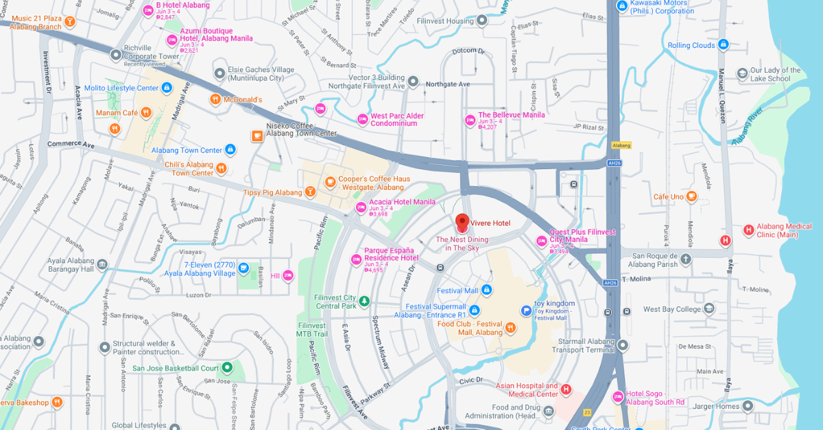 For visitors spending a night or more, Vivere Hotel in Filinvest City is the most complete hotel option in Alabang. It puts you within walking distance of ATC, minutes from Molito and Festival Mall, and a short Skyway connection to NAIA for travelers with flights.